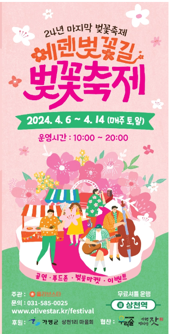 - 4월 6일(토) : 에덴벚꽃길 벚꽃축제 오프닝 페스티벌 (14:00~17:00)