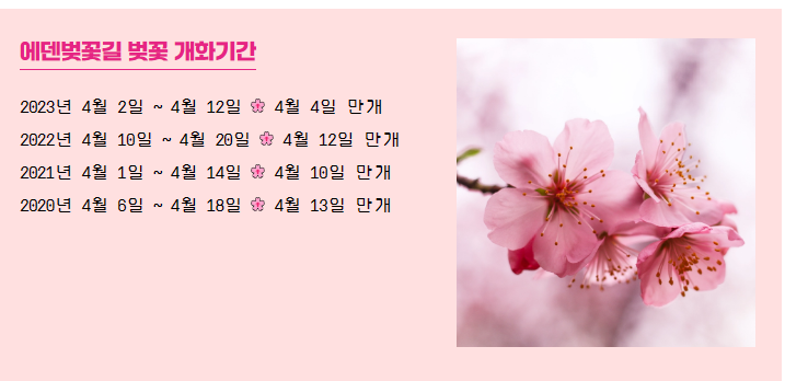 - 날짜 : 2024년 4월 6일(토), 7일(일), 13일(토), 14일(일) / 주말에만 운영됨.