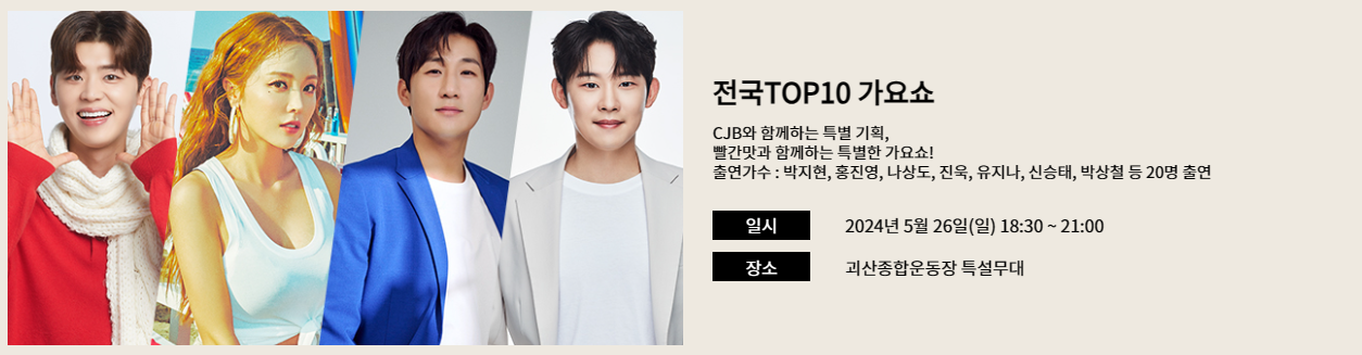 - 폐막식 및 전국 TOP10 가요쇼 : 26일(일) 18:30 ~ 21:00