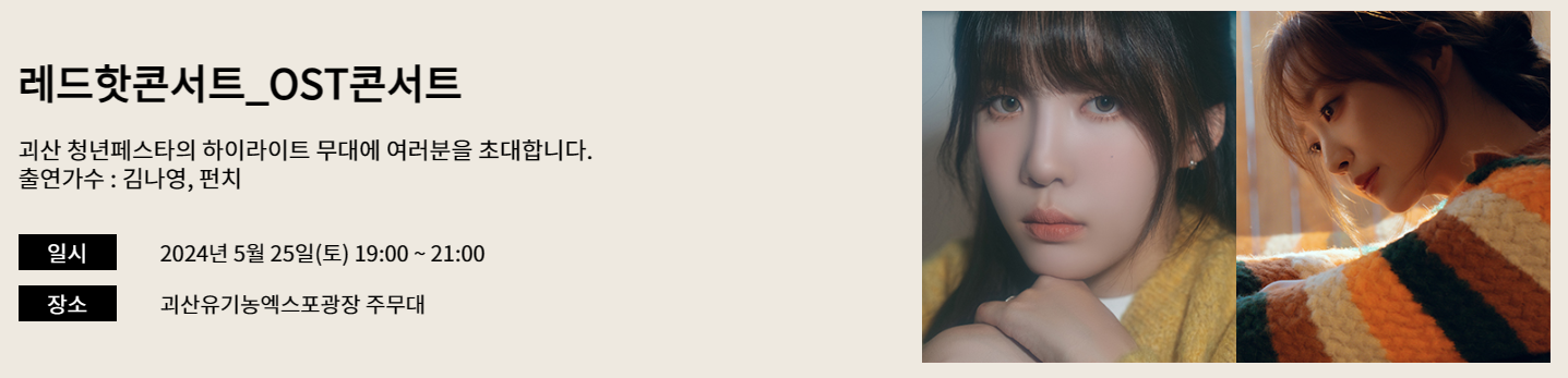 - 장소 : 괴산유기농엑스포광장 주무대