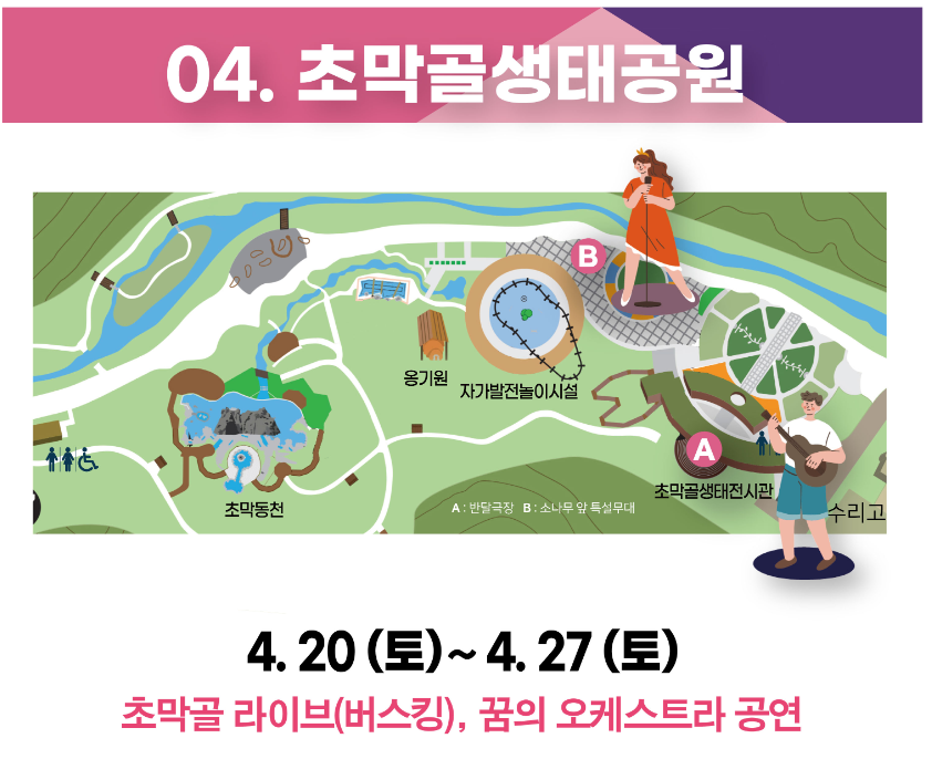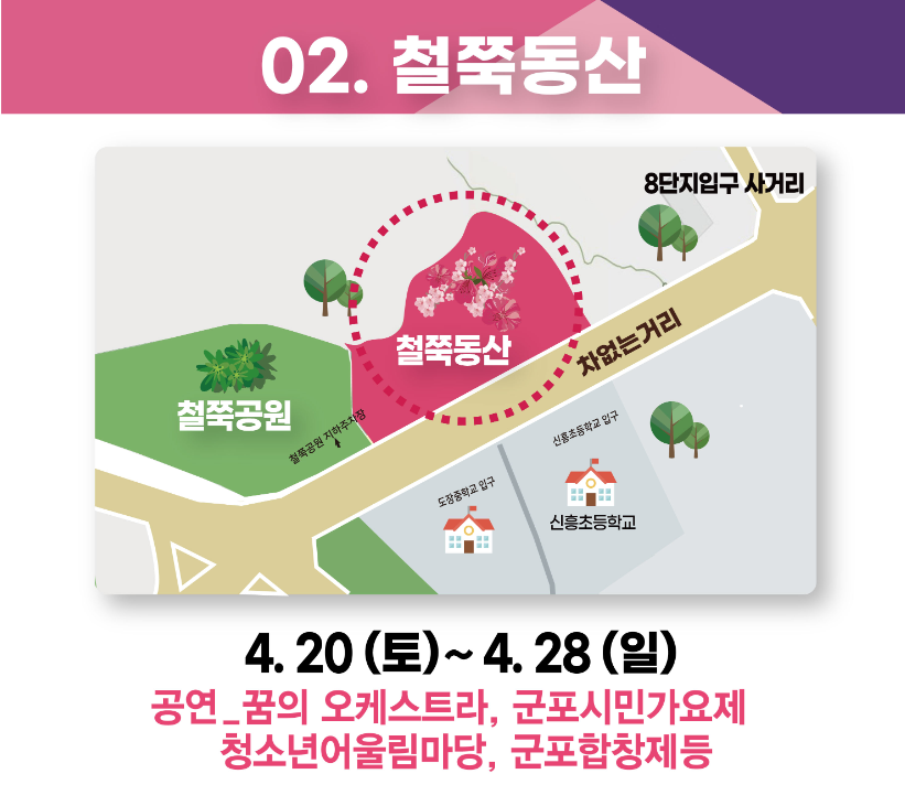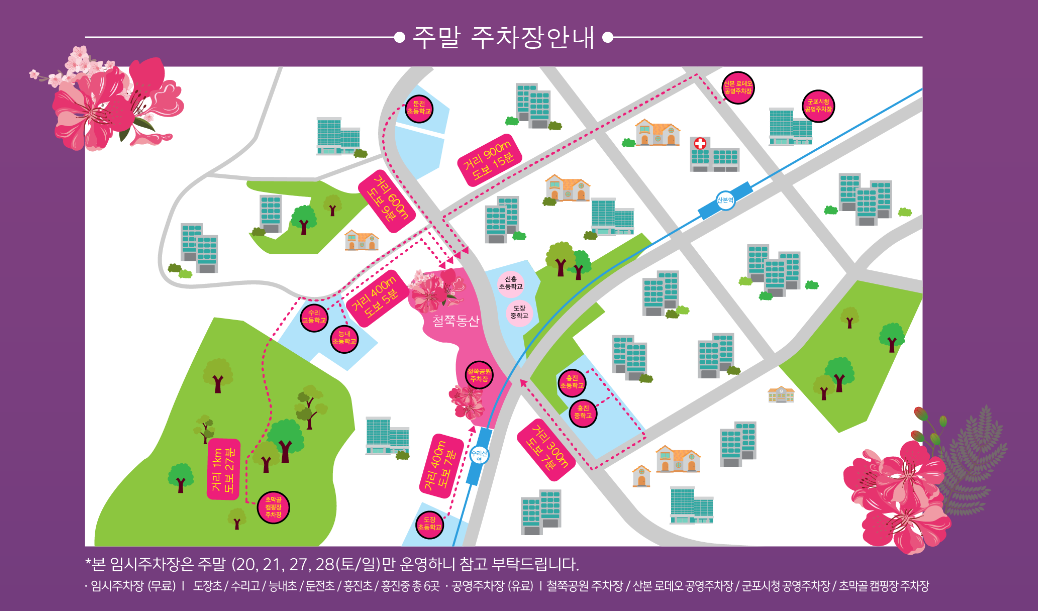 - 축제장소 :철쭉동산과 초막골생태공원 일원에서 열리며, 자연 속에서 봄의 아름다움을 만끽할 수 있습니다.