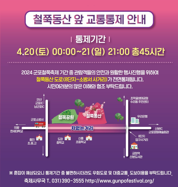 - 지하철 이용: 군포철쭉축제는 지하철을 통해 접근이 가능하니, 대중교통을 이용하시는 분들도 편리하게 방문할 수 있습니다.
