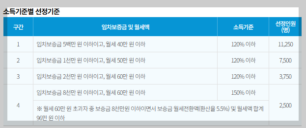 . 임차보증금 5백만 원 이하, 월세 40만 원 이하, 소득 120% 이하 - 11,250명