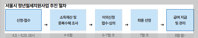 - 제외 대상: 소득 기준을 초과하는 경우, 국민기초생활수급자, 청년월세(시·정부) 기수혜자 등