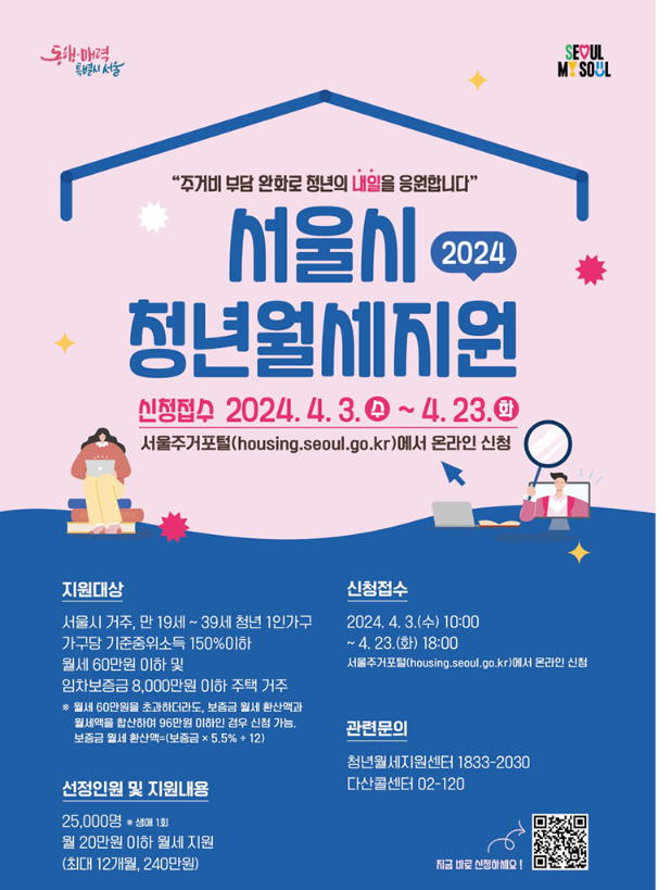 서울시는 청년들의 주거 부담을 덜어주기 위해 '2024년도 청년월세 지원' 프로그램을 실시합니다.