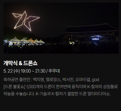 - 공연 시간 : 오후 7시 ~ 9시 (주무대)