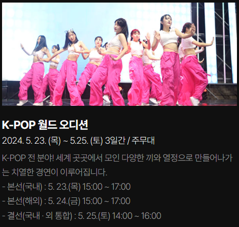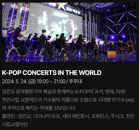 아래 2024 천안 K컬처 박람회에 날짜별 프로그램 일정 및 주차, 교통편에 대해 자세하게 정리되어 있으니, 꼭 확인 해보세요~!