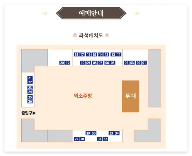 - 외소주방에서 진행되며, 1회당 최대 34명까지 입장 가능
