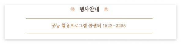 - 궁능 활용프로그램 콜센터를 통해 프로그램 관련 문의 가능