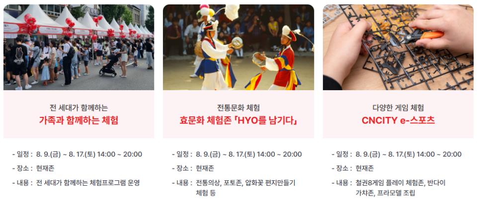 - 효문화 체험존 'HYO를 남기다': 08.09.(금) ~ 08.17.(토) 14:00 ~ 20:00