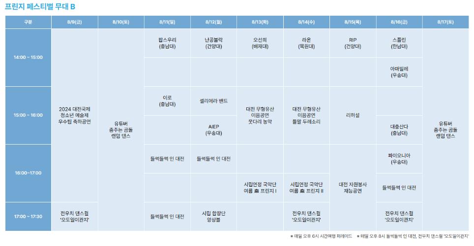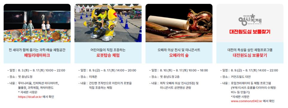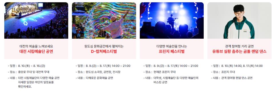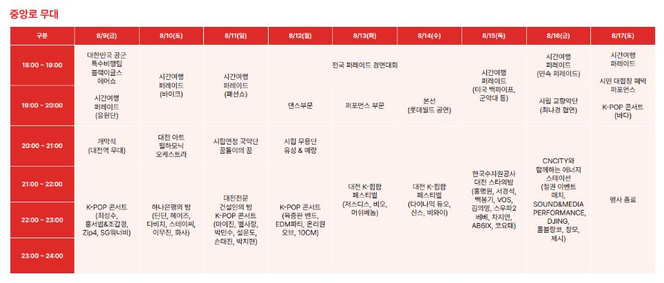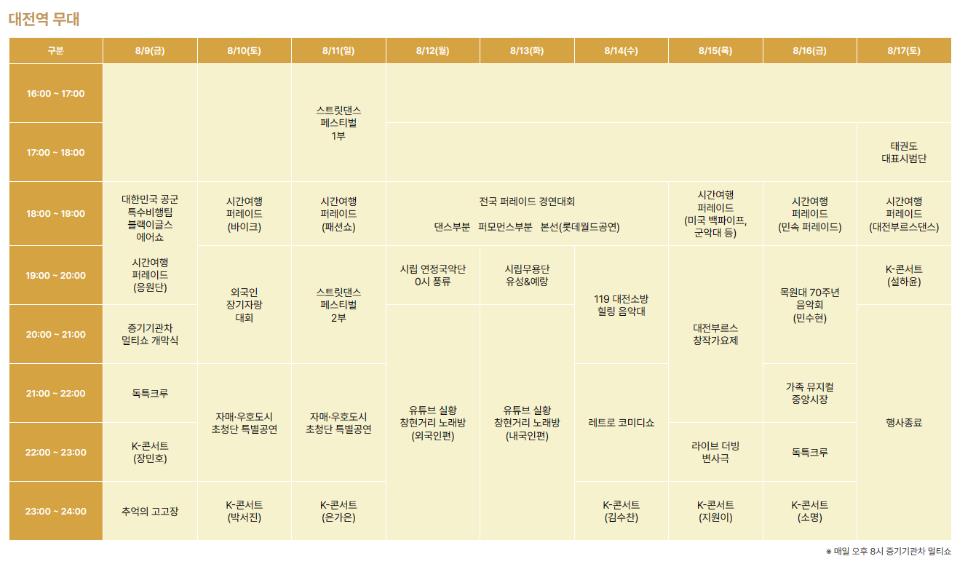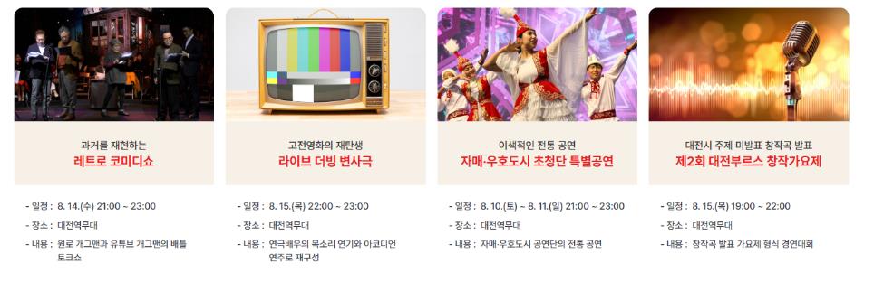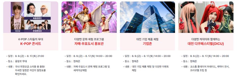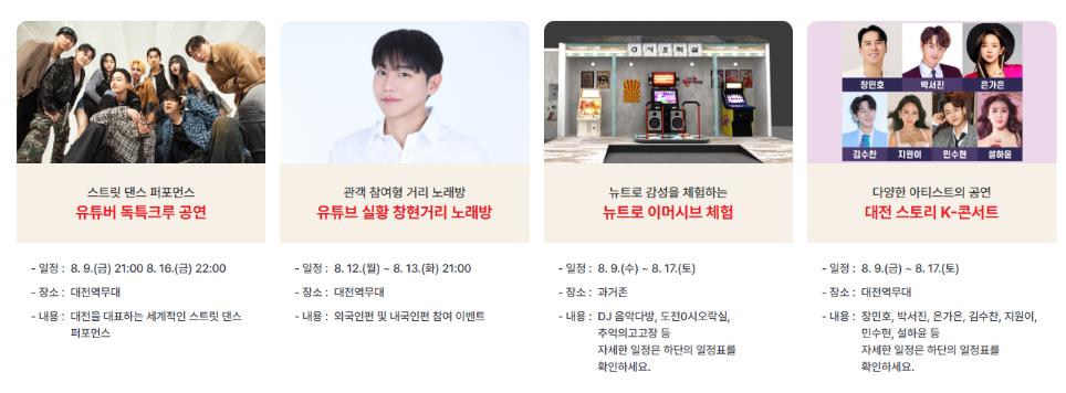 - 대전 스토리 K-콘서트: 08.09.(금) ~ 08.17.(토)