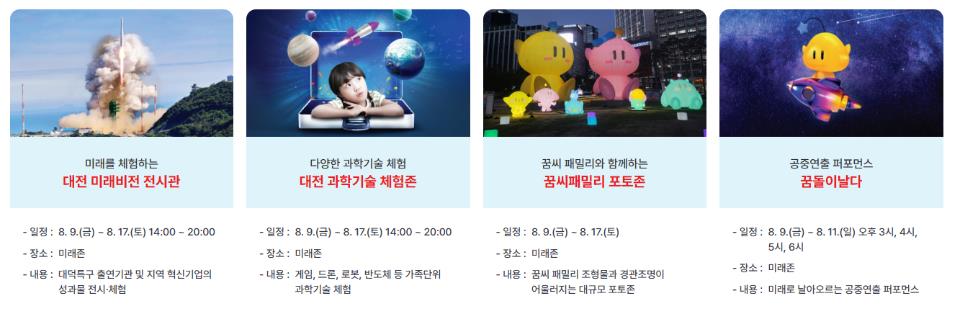 - 과학기술 체험존: 08.09.(금) ~ 08.17.(토) 14:00 ~ 20:00