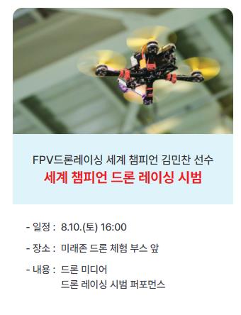 - 세계 챔피언 드론 레이싱 시범: 08.10.(토) 16:00