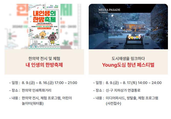 - Young도심 청년 페스티벌: 08.09.(금) ~ 08.17.(토) 14:00 ~ 24:00