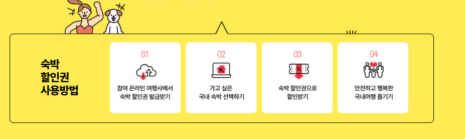 ✓ 숙박 할인권은 온라인 여행사 채널(여기어때, 인터파크, 하나투어, 위메프, 야놀자 등)을 통해 1인 1매 선착순으로 받을 수 있습니다.
